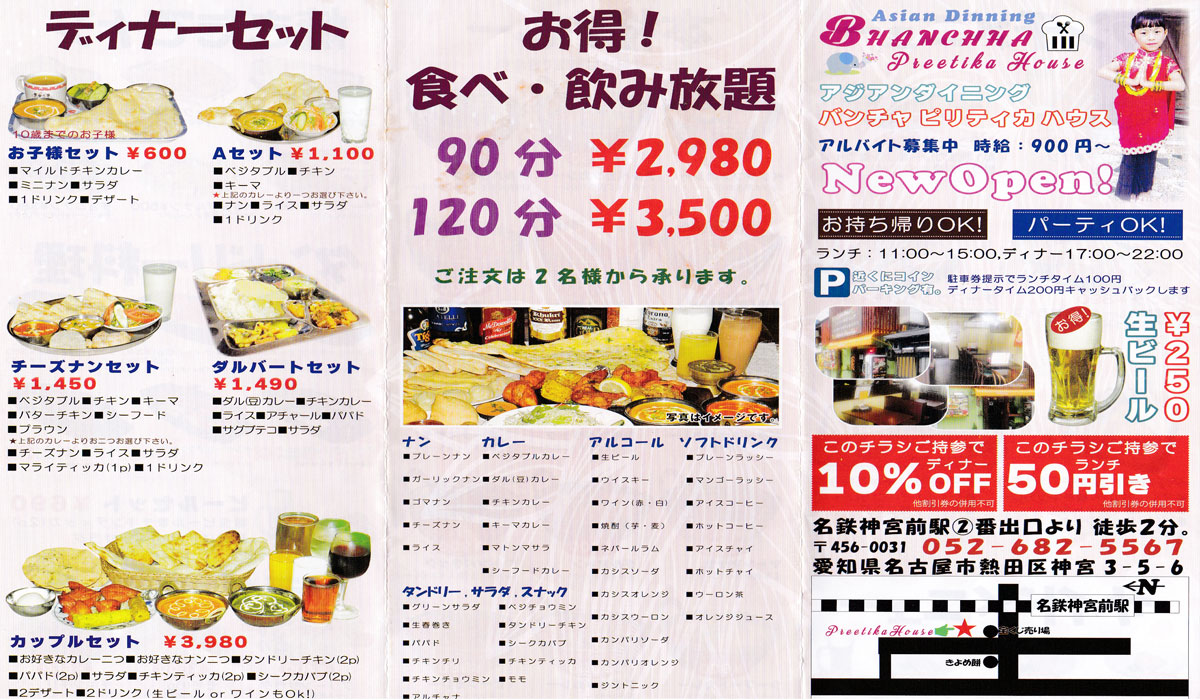※ お知らせ:予約申し込み時間本日の営業3時間前に確認取ってからランチ・ディナーのため来られた場合10%割引きなります。